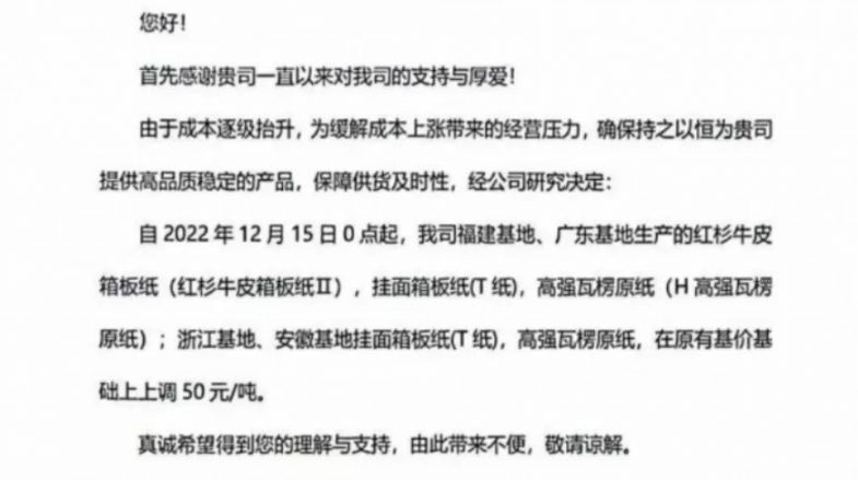 情況不妙!包裝紙市場(chǎng)再次進(jìn)入小步快漲階段!繼前日玖龍、山鷹宣布漲價(jià)以后,今日玖龍、山鷹兩大龍頭紙業(yè)再次宣示定價(jià)權(quán)。 山鷹兩連漲 據(jù)悉,兩家紙企投石問(wèn)路獲得了正反饋,于是開(kāi)啟第二輪漲價(jià)。對(duì)…